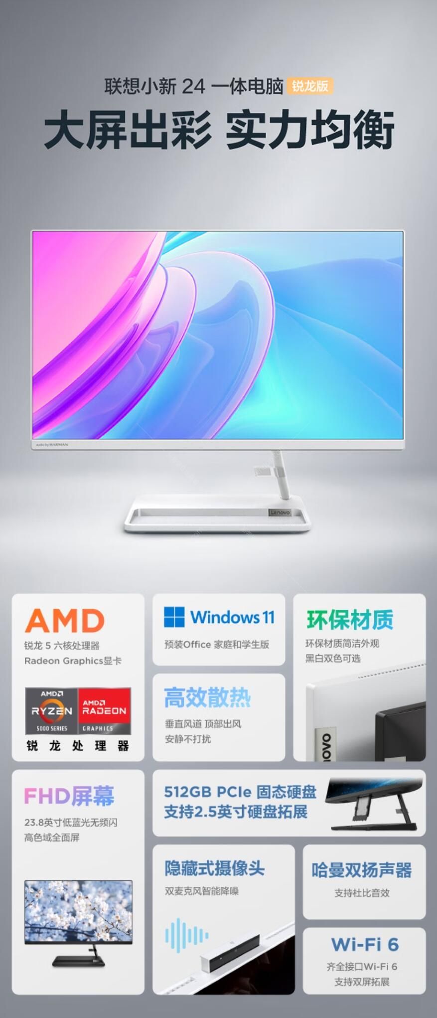 基本参数品牌联想(Lenovo)联想lenovo 小新-24一体机电脑(R5-5500U 8G 512G 集显 无光驱 win11 黑色 23.8英寸)型号小新-24CPU型号:R5-5500U内存:8GB硬盘:512G显卡显卡类型:核芯显卡显存容量:共享系统内存屏幕尺寸:23.8英寸