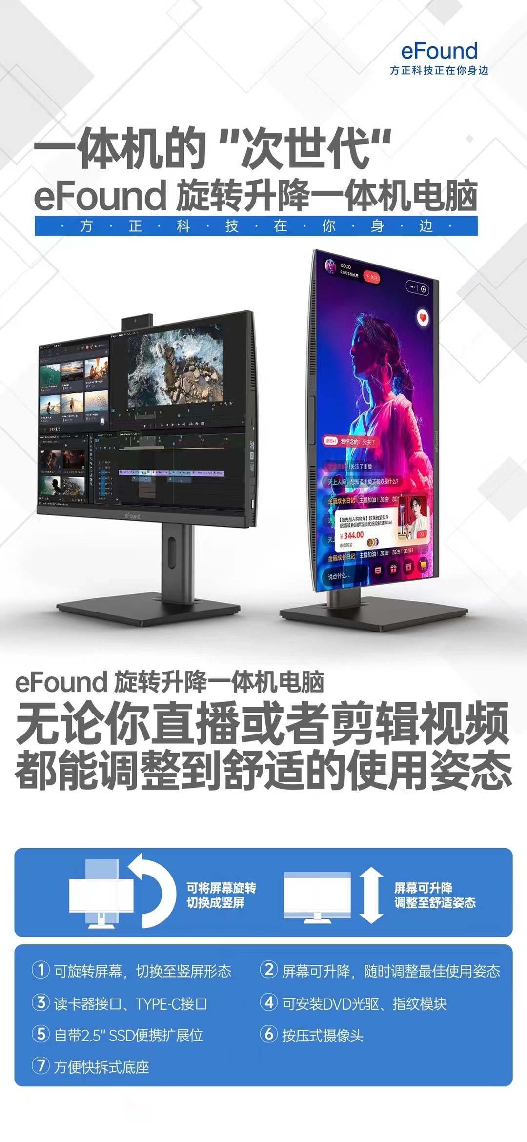 eFound方正 天炫 27寸旋屏升降一体机电脑