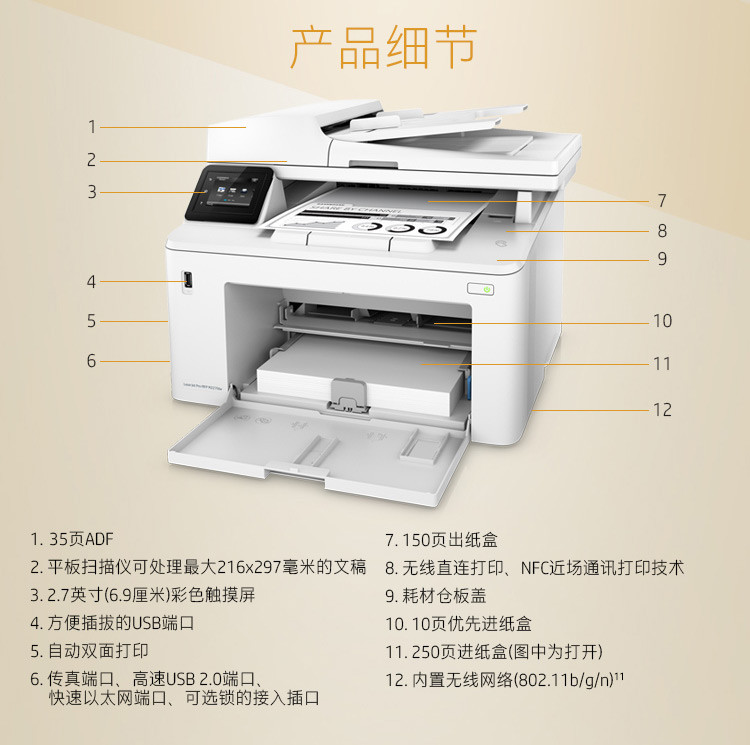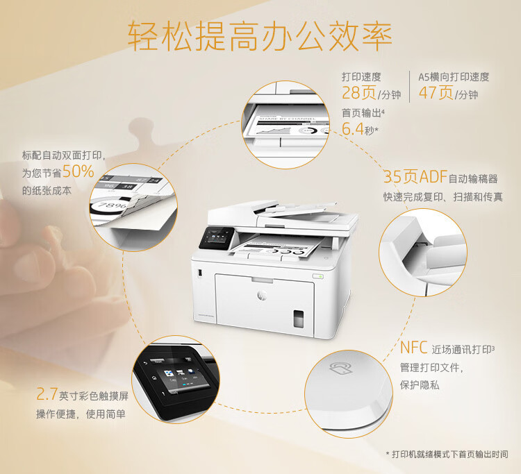 惠普(HP) 227fdw A4黑白激光一体机 家用办公无线打印机 复印扫描双面打印