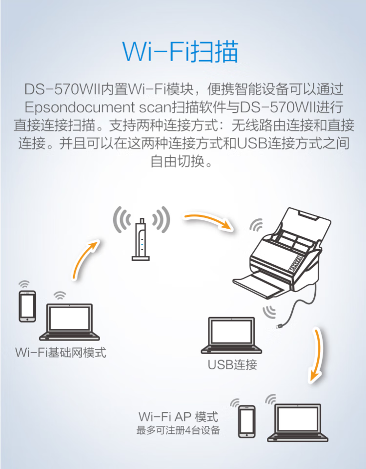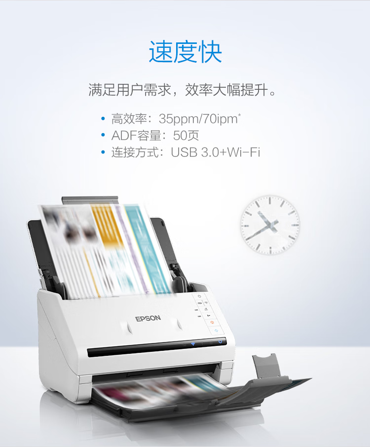爱普生(EPSON)DS-570WII A4馈纸式高速高清无线Wifi办公彩色文档扫描仪