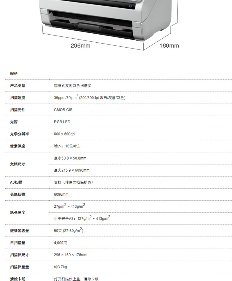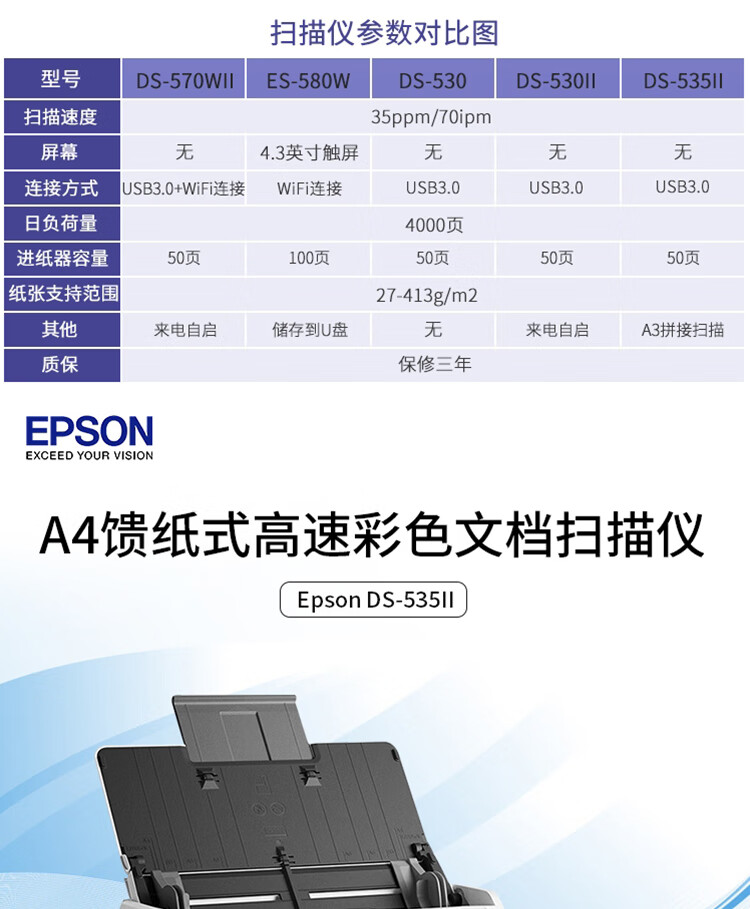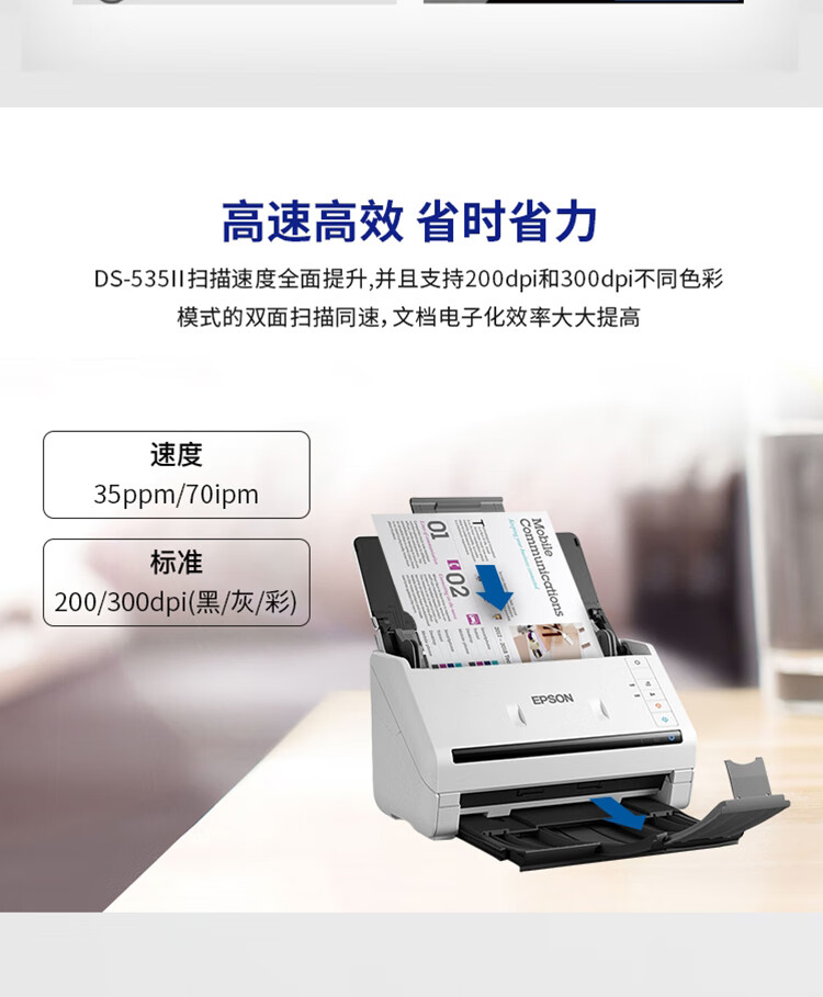 爱普生(EPSON)DS-535II A4馈纸式高速彩色文档扫描仪