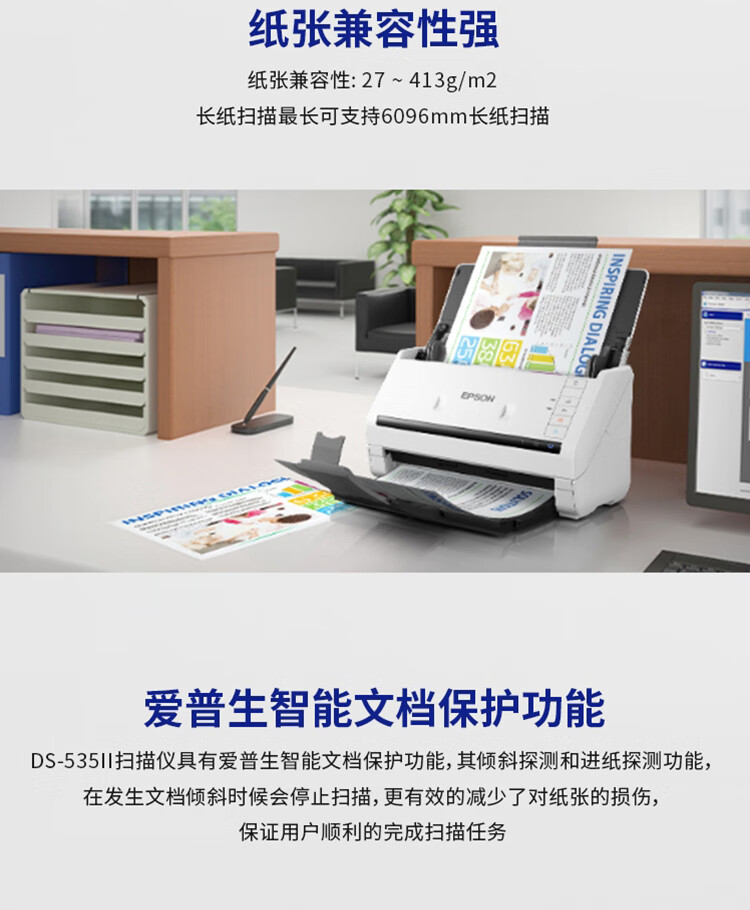 爱普生(EPSON)DS-535II A4馈纸式高速彩色文档扫描仪 支持国产操作系统/软件 扫描生成OFD格式