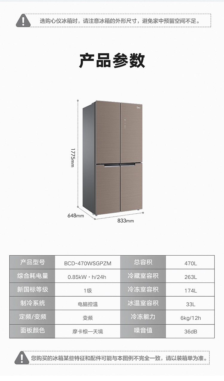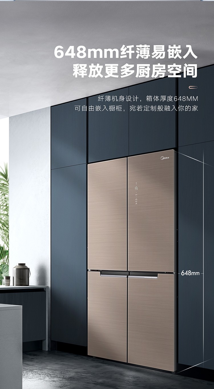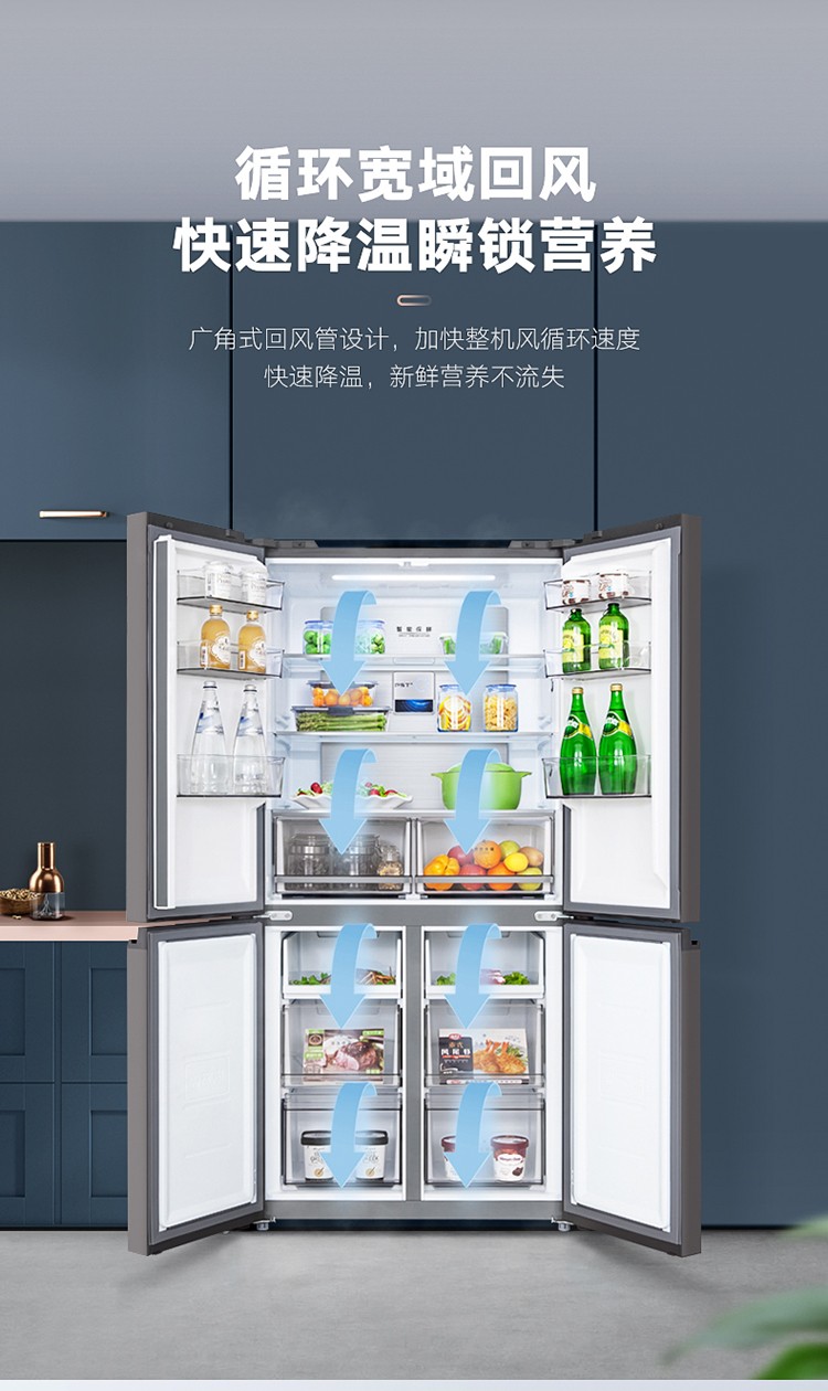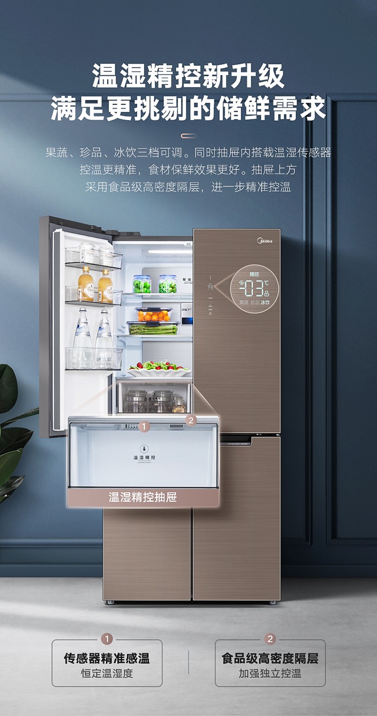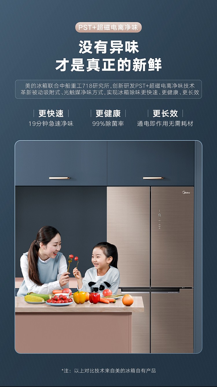 美的(Midea)19分钟急速净味 470升 十字对开门家用冰箱 智能操控