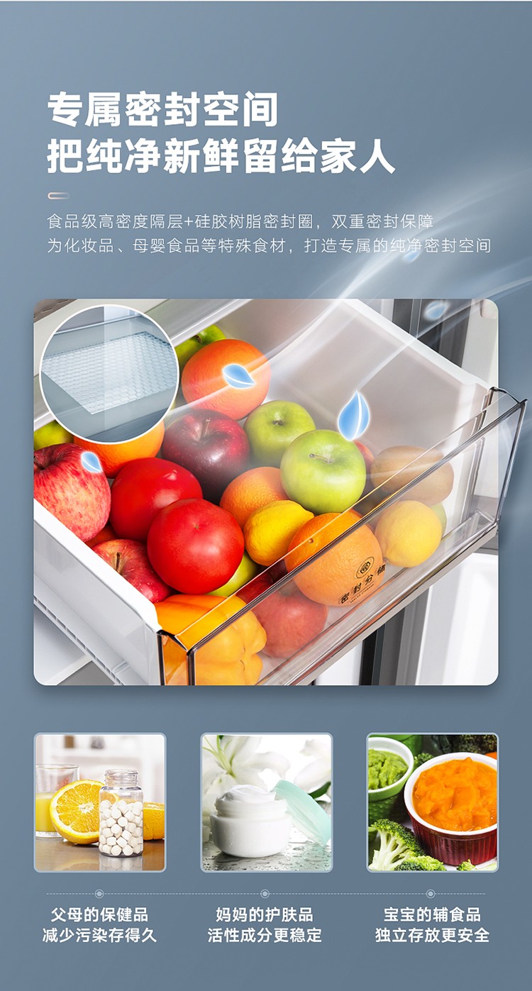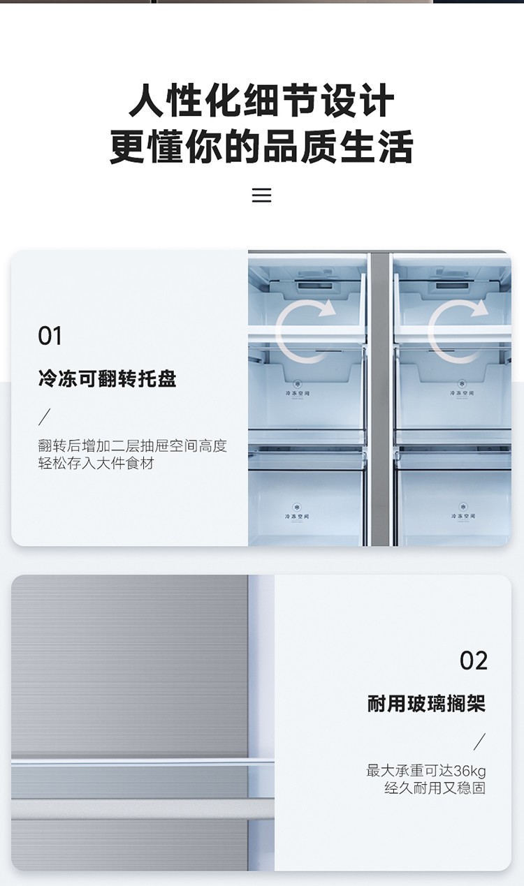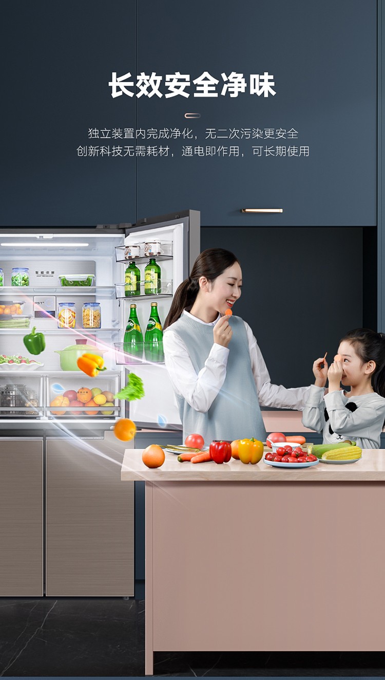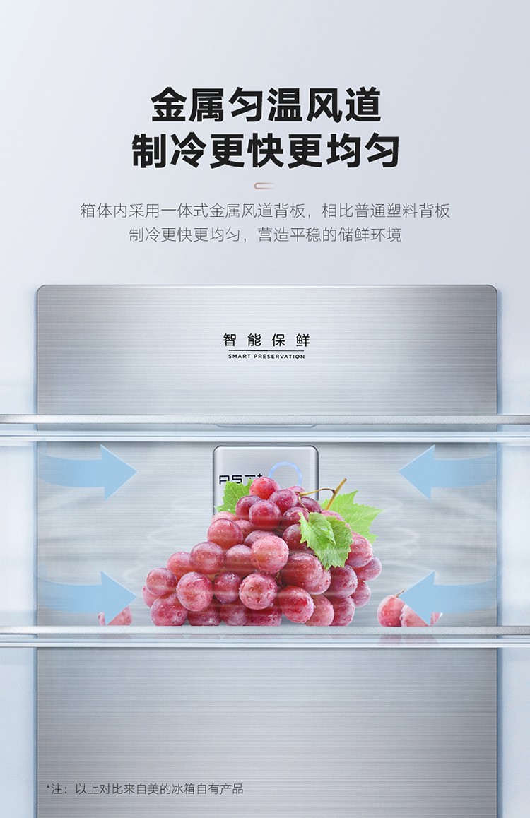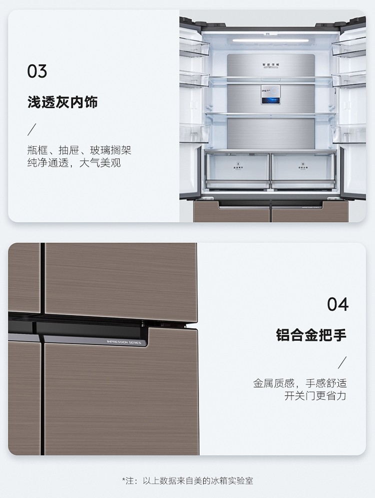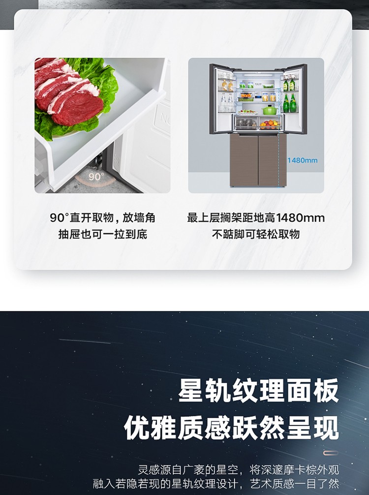 美的(Midea)19分钟急速净味 470升 十字对开门家用冰箱 智能操控