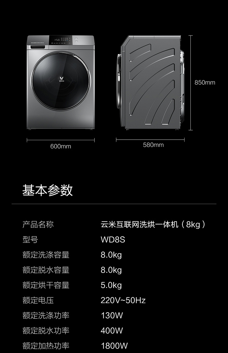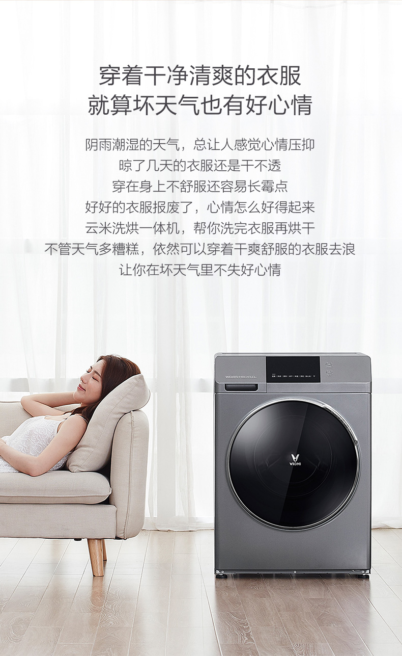 云米(VIOMI)自动洗衣机8公斤洗烘一体变频滚筒洗衣机全中途添衣APP控制