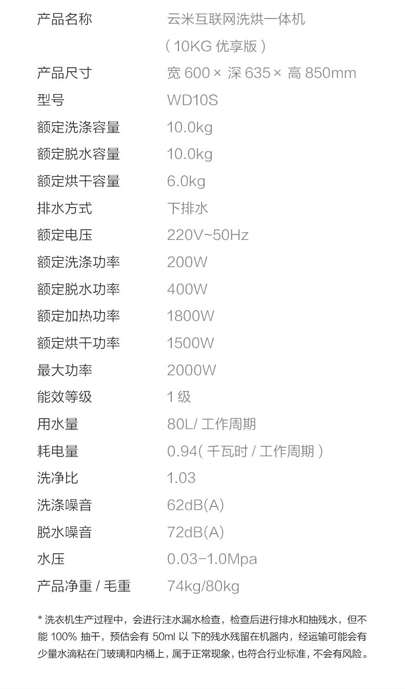 云米(VIOMI)自动洗衣机8公斤洗烘一体变频滚筒洗衣机全中途添衣APP控制 灰色 烘洗一体WD10S