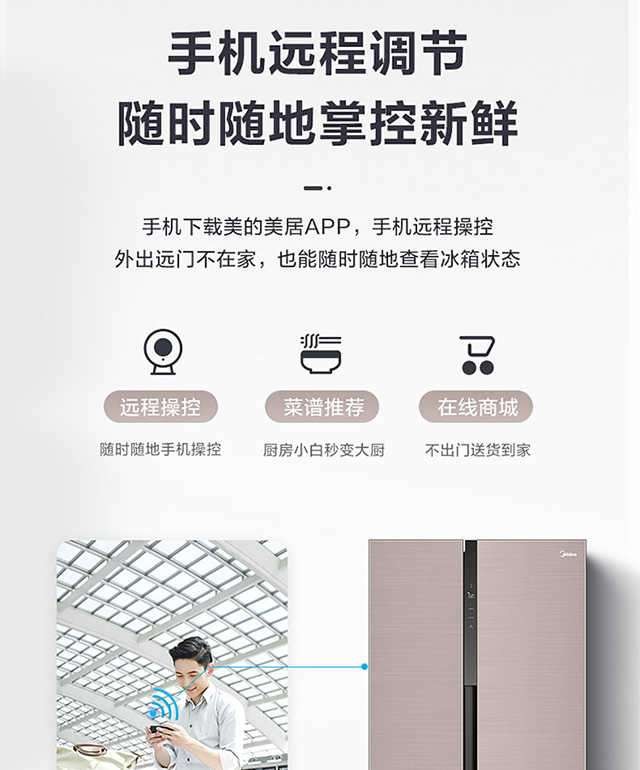 美的(Midea)19分钟急速净味 470升 十字对开门家用冰箱 智能操控