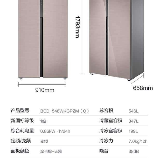 美的(Midea)546升对开门冰箱 天境 19分钟急速净味 智能家电 一级变频 风冷 温湿精控 BCD-546WKGPZM(Q)