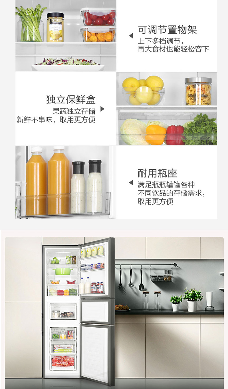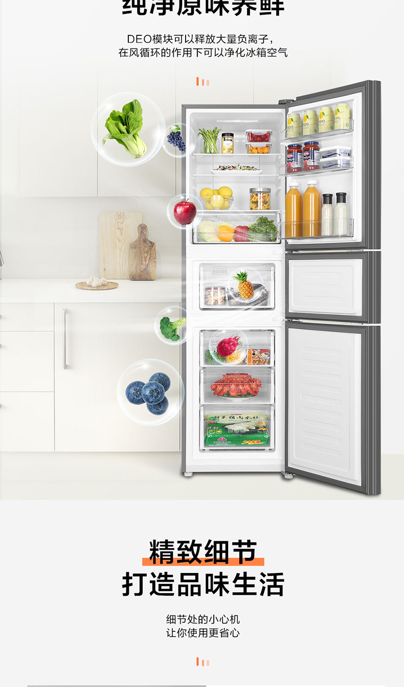 海尔(Haier)三门冰箱 风冷无霜 净味保鲜 -7摄氏度软冷冻