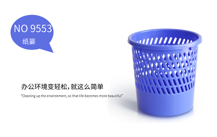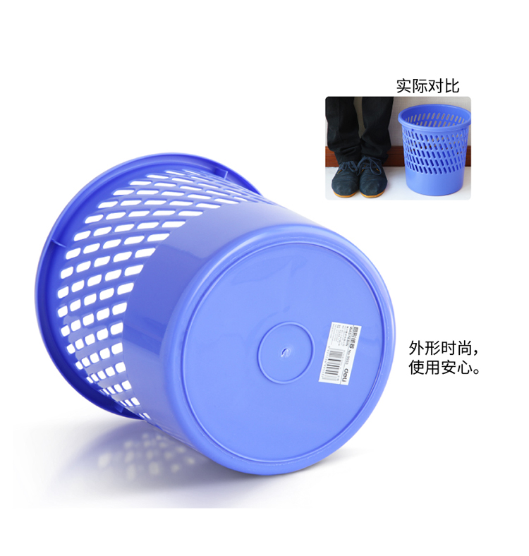 得力 (deli)9553 优质耐用圆纸篓/清洁桶/垃圾桶 蓝色 1个