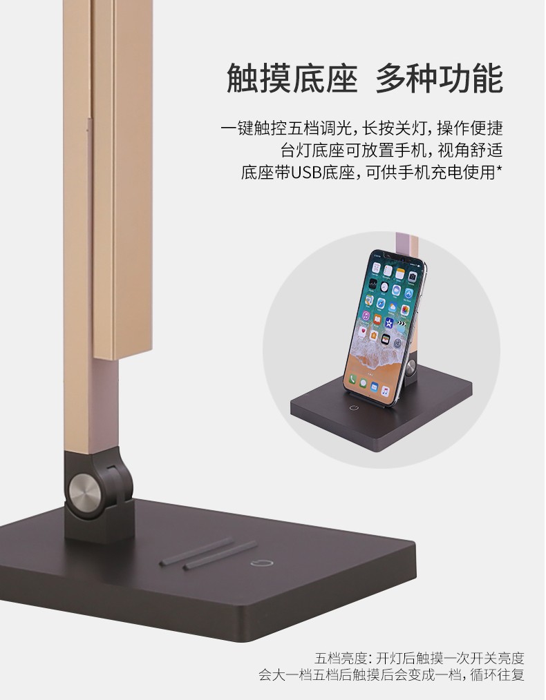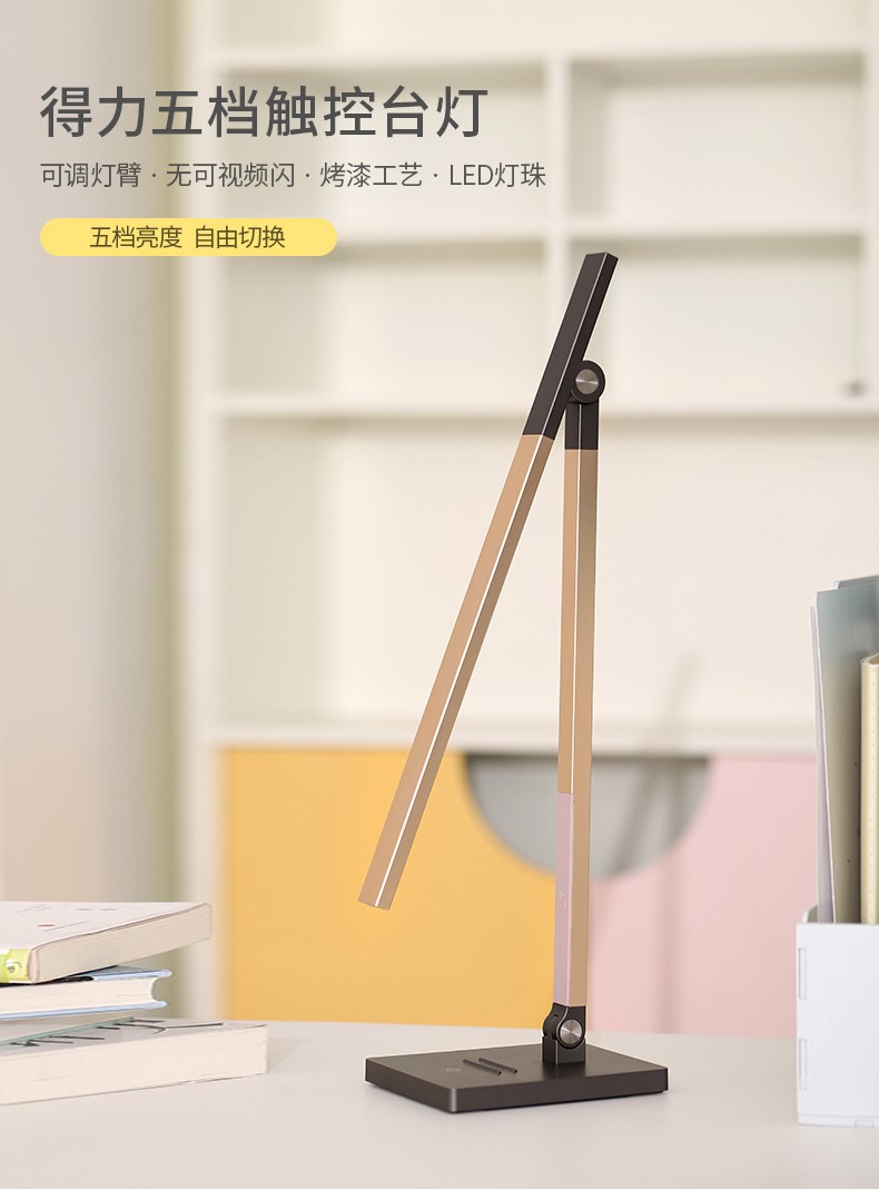 得力(deli)4302 LED 台灯 五档可调光 简约时尚 香槟色